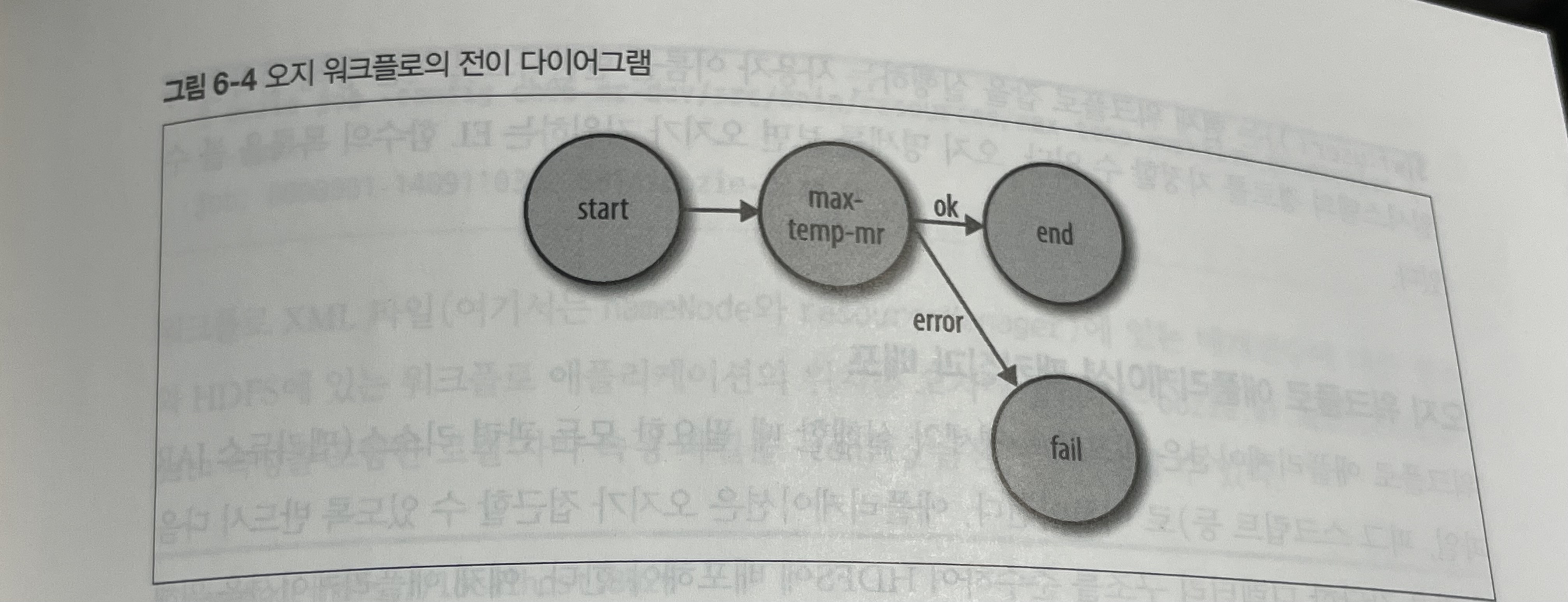 잡을 제출한 클라이언트 머신에서 실행되는 JobControl과 달리 오지는 클러스터에서 실행되는 서비스로, 클라이언트는 즉시 혹은 나중에 실행하라는 워크플로 명세를 제출할 수 있다. 문법만 보면 오지의 워크플로는 액션노드 와 제어흐름 노드 로 이루어진 DAG다.