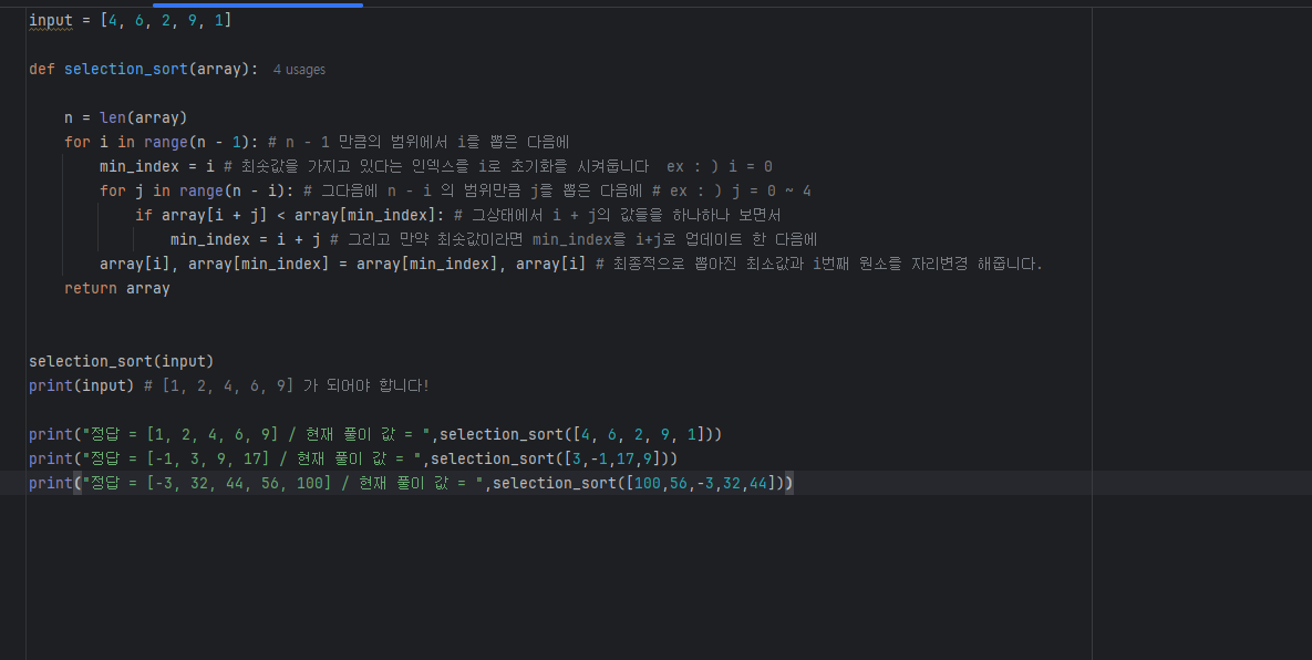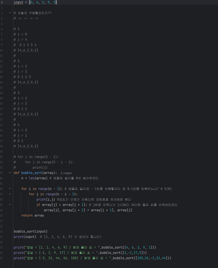 [4, 6, 2, 9, 1] # 정렬되지 않은 배열