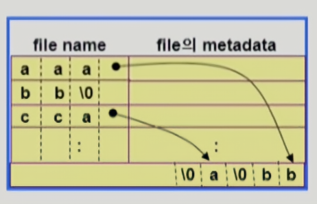 - 파일의 이름과 metadata를 미리 정해진 bit씩을 정해서 저장하는 방법입니다.