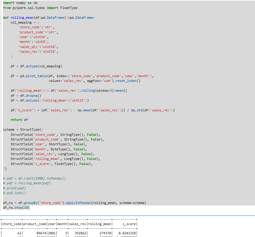 store_code 단위로 applyInpandas로 파티션이 맺어진 분류된것을 schema를 통해 넘겨주는 과정입니다.