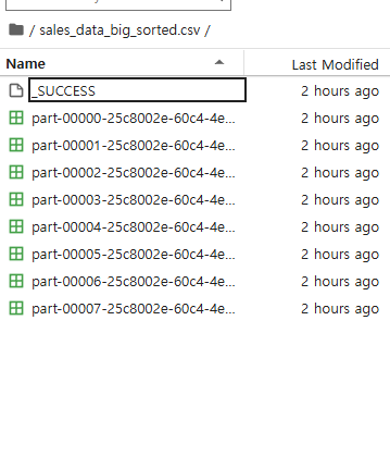 df_sorted.write모드로 해주고 overwite로 해서 혹시나 있으면 무시하고 덮어쓰는거고,format.csv로 파일을 저장하고 옵션을 통해서 header값을 명시하는것으로 저장하였습니다.