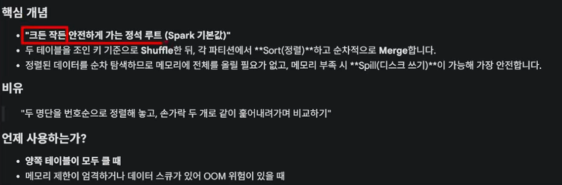 - Join 전략: 데이터 크기에 따라 Broadcast Hash Join을 유도하거나, 대용량 간의 조인에서는 Sort Merge Join이 원활하게 돌아가도록 설계합니다.