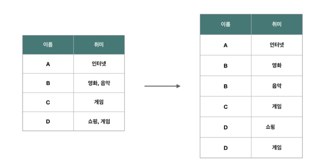 관계형 데이터베이스의 설계에서 중복을 최소화 하게 데이터를 구조화하는 프로세스를 정규화라고 한다.