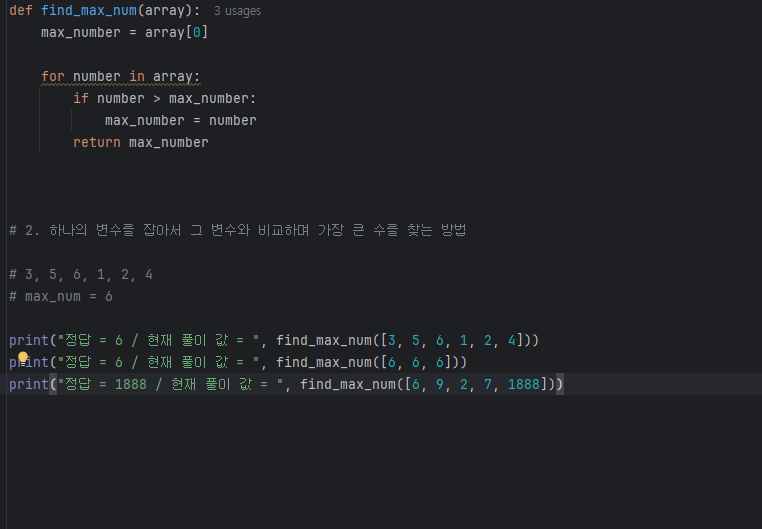 최댓값 찾기 - 다음과 같이 숫자로 이루어진 배열이 있을 때, 이 배열 내에서 가장 큰 수를 반환하시오.