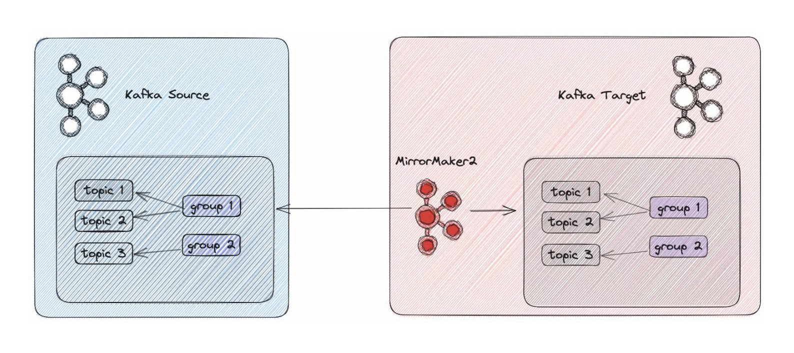 - Target/Sink Cluster (타겟 클러스터): 데이터가 복제되는 목적지 클러스터