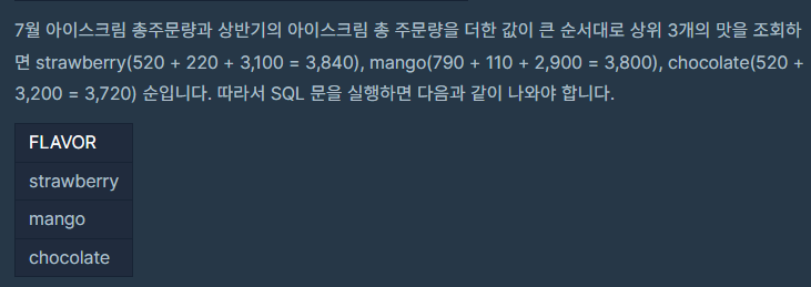 - 7월 + 상반기 아이스크림 총 주문량 상위 3개 조회