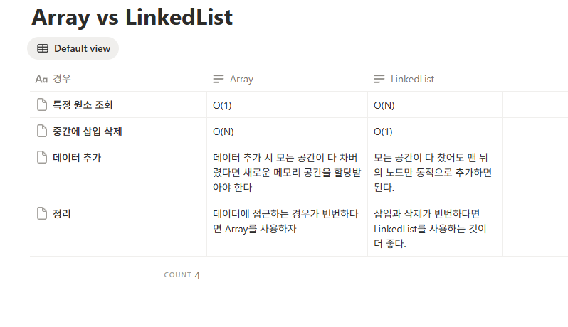 필요할 때 노드를 만들어 연결하는 방식이라서 삽입/삭제에 강한 편 입니다.