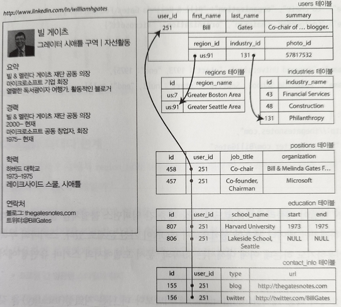 - JSON 데이터 모델 표현은 multi table 스키마보다 더 나은 지역성(locality)을 갖는다.