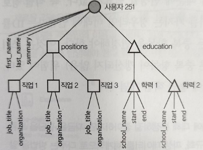 - 네트워크 모델은 이것을 복잡하게 지원해서 망했지만, 오늘 날의 문서지향 DB들은 이 부분을 수용했다.